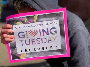 It’s that time of year again when The Table at St George’s participates in GivingTuesday, a global day of giving fueled by the power of social media and you! On Tuesday, December 2, you will have the chance to make a difference in our community by helping to ensure everyone has access to nutritious food and nourishing community! The Table at St. George’s operates every Tuesday in Market Square distributing farm fresh produce alongside gleaned breads, proteins, and snacks free of charge. Truly a place where the friendships formed sustain as much as the produce, this free farmers market has become a staple (and necessity) for the wider community. Support this work by giving this #GivingTuesday!
